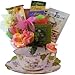 It's hard to believe that this paper gift tote bag is not a real china tea cup, it's just that realistic! Beautifully detailed and charming, this gift bag comes complete with handles, delivering new tea time pleasures day after day with a sampling of fancy teas and matching gourmet go togethers and treats. Open the tote to reveal Green Tea, English Tea, a trio of Ashby's Singles Herbal Tea to try, 2 Rock Candy Swizzle Stick are included to sweeten each cup, add English Tea Cookies, Cinnamon Tea Cookies, Nonni's Almond Biscotti and yummy Fruity Gel Candy to enjoy. Each gift tote arrangement is hand crafted with attention to detail, tied with pretty ribbon and includes a personalized gift message from you. Manufactured by Art of Appreciation Gift Baskets.