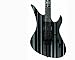 Schecter Synyster Standard Electric Guitar Gloss Black w/Pin Stripes (Pimp Stripe)Here's a more affordable version of the Synyster Gates Custom. This features the same wicked looks of the Avenged Sevenfold guitarist's signature model, but with a few different components, such as a bolt-on mahogany neck rather than a set neck, a rosewood fretboard in place of ebony, and Duncan HB-108 humbuckers rather than the custom Invaders on the Custom model. You still get the "SYN" and DeathBat inlays, a Floyd Rose tremolo, and the awesome gloss black finish with silver pinstripes.