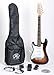 Package features everything you need to start playing: Guitar, Guitar Amp, Instructional DVD, Guitar Bag, Strap, and Cable! RST Short Scale Guitar: A great guitar package for you young beginner: Scaled Down Guitar is about 4" shorter and 3" narrower. It also makes a great travel guitar. Dual cutaway solid Alder body allows access to the highest frets Die Chrome Tuners The body is contoured for hours of comfortable play Three single coil pickups, one volume and two tone controls plus a five way pickup selector switch create all of today's great sounds Vintage fulcrum bridge with six adjustable saddles Truss rod adjustable Maple neck Rosewood fretboard, 21 jumbo frets Actual weight is only 7 lbs Overall length of guitar is 34 1/2". Width at widest point is 10 1/2" Body height is 15 1/2" Width of the neck at the nut: 1 9/16"; at the 12th fret: 2" Thickness of the neck at the 1st fret is 13/16" and at the 12th fret 15/16" String spacing at the nut is 1/4" and 3/8" at the bridge Scale length is 23" > Pocket Guitar Amp features : Battery Power - Great for portable practice only 1/2 lb weight, Master Volume Control Read more