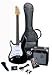 Package features everything you need to start playing: Left Handed Guitar, Guitar Amp, Instructional DVD, Guitar Bag, Guitar Tuner, Strap, and Cable! A great guitar package for you young beginner: Scaled Down Guitar is about 3" shorter and 2" narrower. It also makes a great travel guitar. Guitar has a dual cutaway solid Alder body allows access to the highest frets, and die cast chrome Tuners. The body is contoured for hours of comfortable play. It has three single coil pickups, one volume and two tone controls plus a five way pickup selector switch to create all of today's great sounds. Guitar is equipt with vintage fulcrum bridge with six adjustable saddles and truss rod adjustable Maple neck, Rosewood fretboard, 21 jumbo frets. Actual weight is only 8.5 lbs Overall length is 39" including the strap button Scale length is 24" Width at the widest point is 13" Width of the neck at the nut: 1 5/8"; at the 22st fret: 2 1/8" Body thickness is 1 3/4". GA-1065 10 Watt Guitar Amp features : 10 Watts of power through a specially design 5.5" speaker Master Volume Control Two Band EQ with Bass and Treble controls Headphone jack for quiet practice Weight of amp: 6.5lbs Overall length of guitar is 36 ¾". Width at widest point is 11 ½" Width of the neck at the nut: 1 1/2"; at the 21st fret: 2 1/8" Other items include:10' instrument cable to connect your guitar to your amp EB400 Guitar Bag to protect your guitar when your not playing A Guitar Strap. Note DVD shows a right handed player. Read more